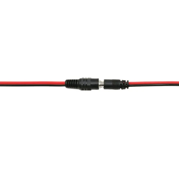 A male-female DC connector with wires, often called a pigtail, allows you to connect a DC power source to a device or extend a power cable. The male connector has a pin, while the female connector has a receptacle to receive it. These connectors are standardized by their dimensions, such as the common 5.5mm outer and 2.1mm inner diameter, and are identified by color-coded wires (red for positive, black for negative). They are widely used with low-voltage devices like CCTV cameras, LED strips, and routers.