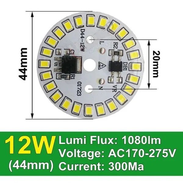 The DOB (Driver On Board) technology allows the LED chip to run directly on AC 220V, making installation easier and reducing the need for additional components. Whether you are repairing a damaged LED bulb or creating your own lighting setup, this 12W LED chip delivers bright, flicker-free light with low heat generation and improved efficiency.