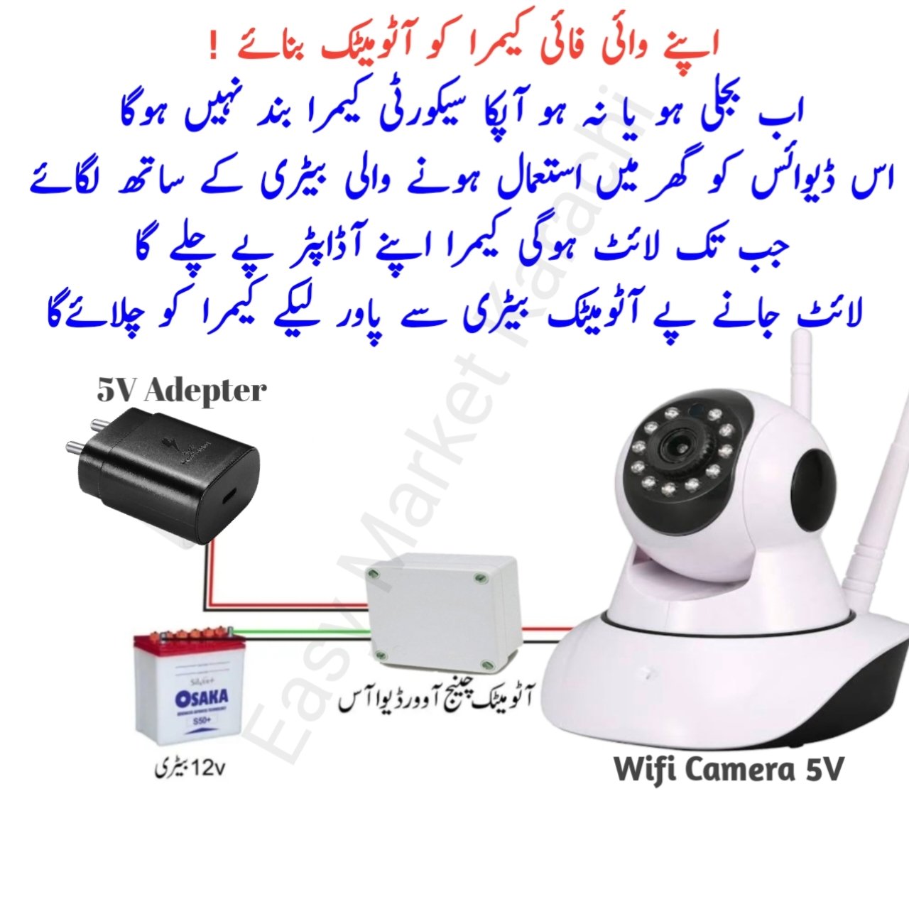 🔋 Automatic Inverter for 5V WiFi Camera ek perfect solution hai aapke V360 WiFi camera ke liye jo power backup provide karta hai load shedding ke waqt. Ye device aapke camera ko 5V se 12V battery ke zariye run karne ki sahulat deta hai.